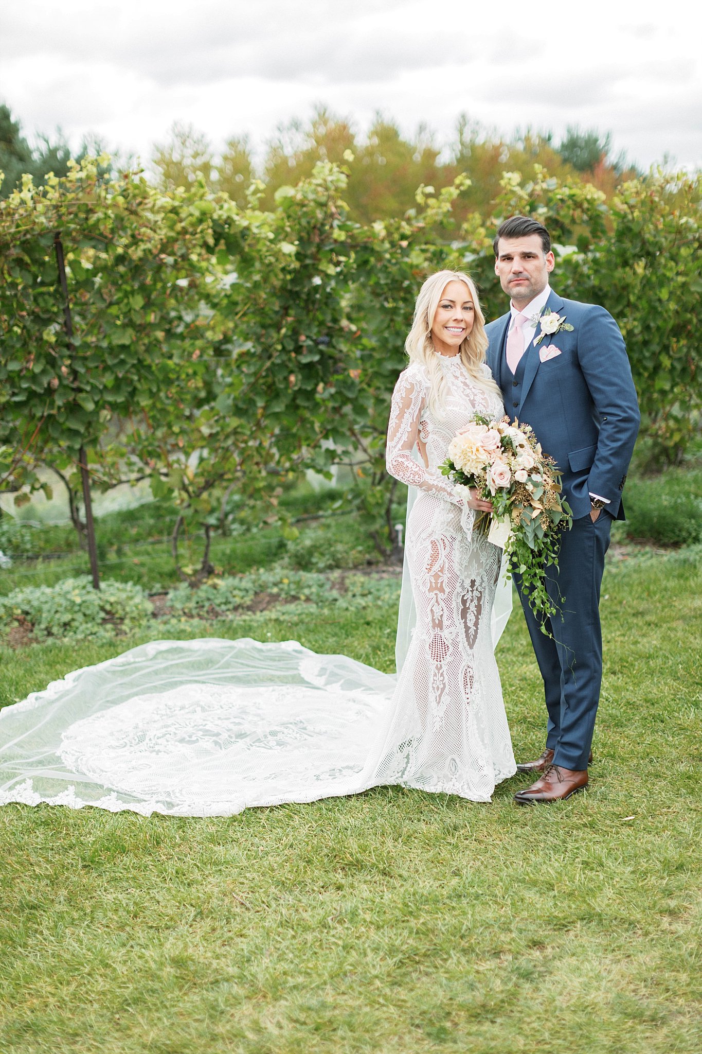 In September in Northern Michigan, nestled between the vines of a premiere vineyard, Tawney and Mike said I do underneath an arch draped in linens and chandeliers made from his childhood swing set. Their vineyard wedding was full of intricate and intimate details that make this Northern Michigan destination weddings one of my 2018 favorites. T and M’s vineyard wedding at Black Star Farms was nothing short of amazing thanks to a fabulous team of vendors put together by the ever fabulous Stacy Horn of Juniper and Lace Events. From her dad’s vintage Buick that drove her to the ceremony to her two custom gowns and all the smiles and laughter in between, Tawney and Mike’s wedding was absolutely magical. Cheers to a forever kind of love story that began in Northern Michigan.